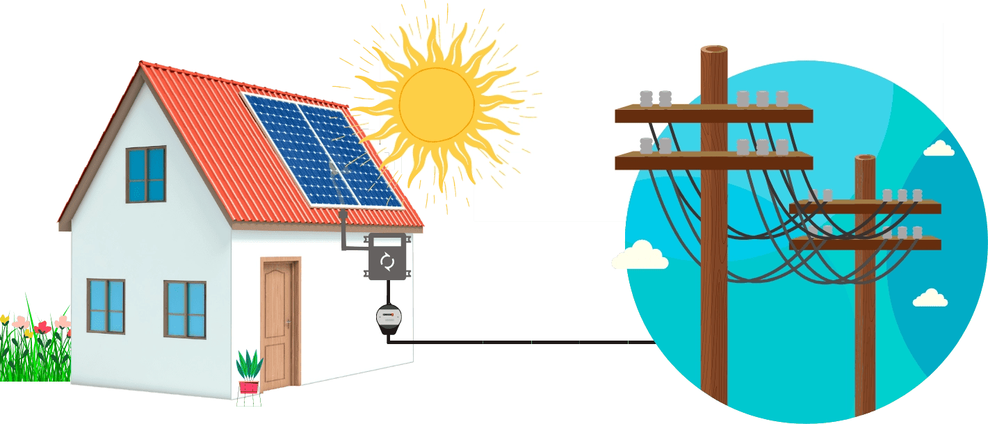 A energia excedente é lançada na rede elétrica, gerando crédito de forma que ao final do mês são transformados em descontos em sua de energia.