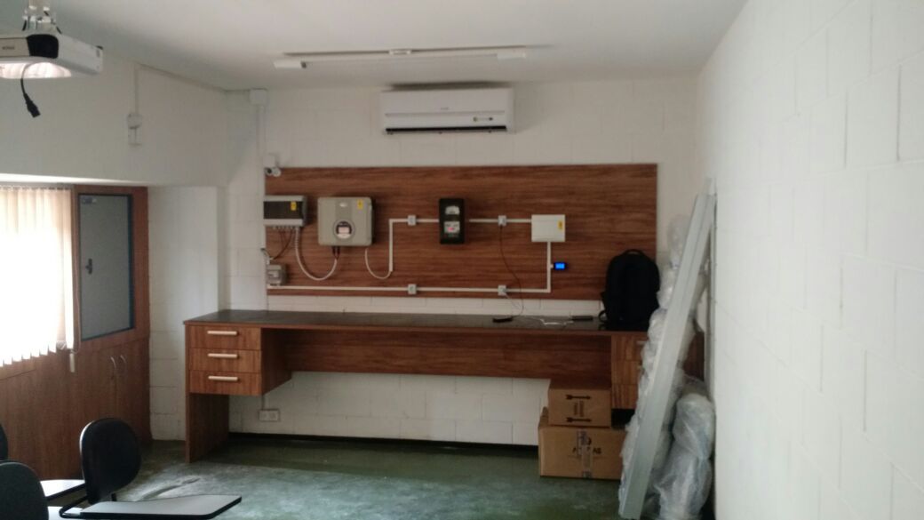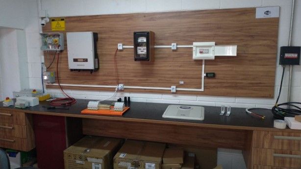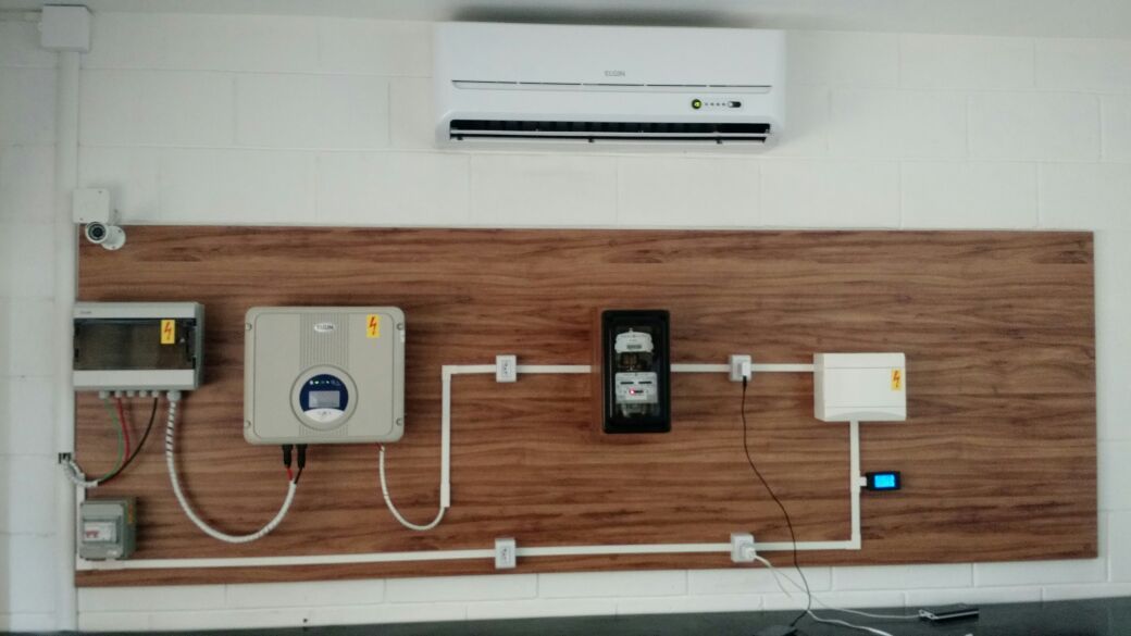 Laboratório composto por diversos inversores solares para treinamento de clientes e testes de produção das placas em telhados com orientações diferentes
