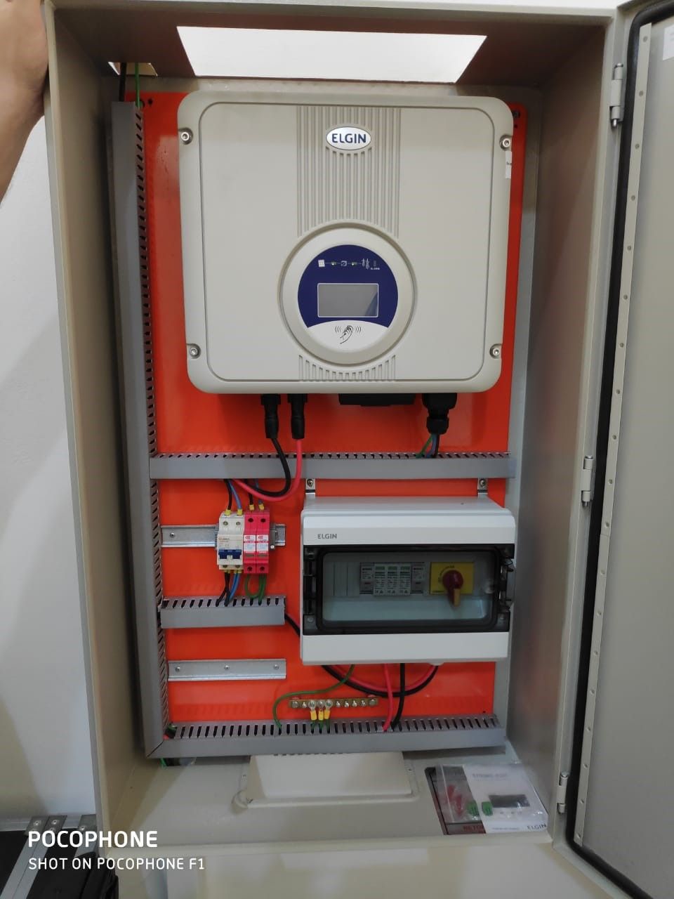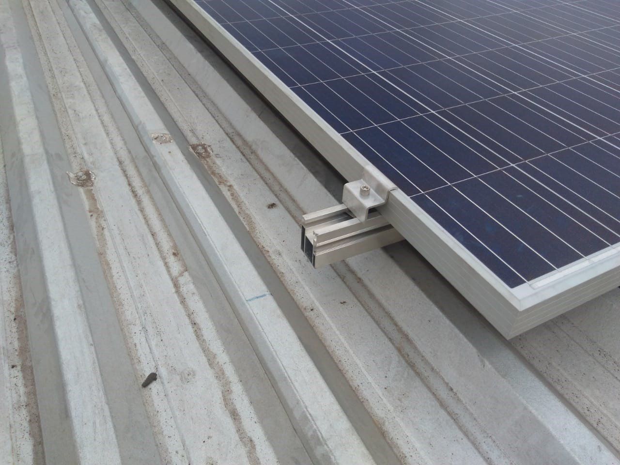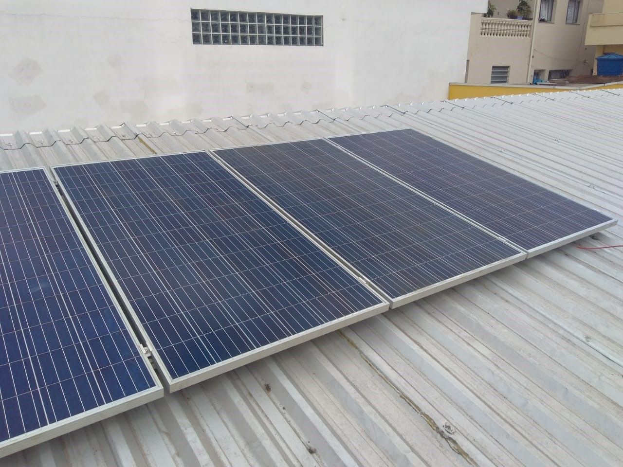 Micro Usina Fotovoltaica composta de: 4 painéis de 310Wp; 1 Inversor de 1,6KW; Sistema instalado para treinamento e testes de geração de energia.