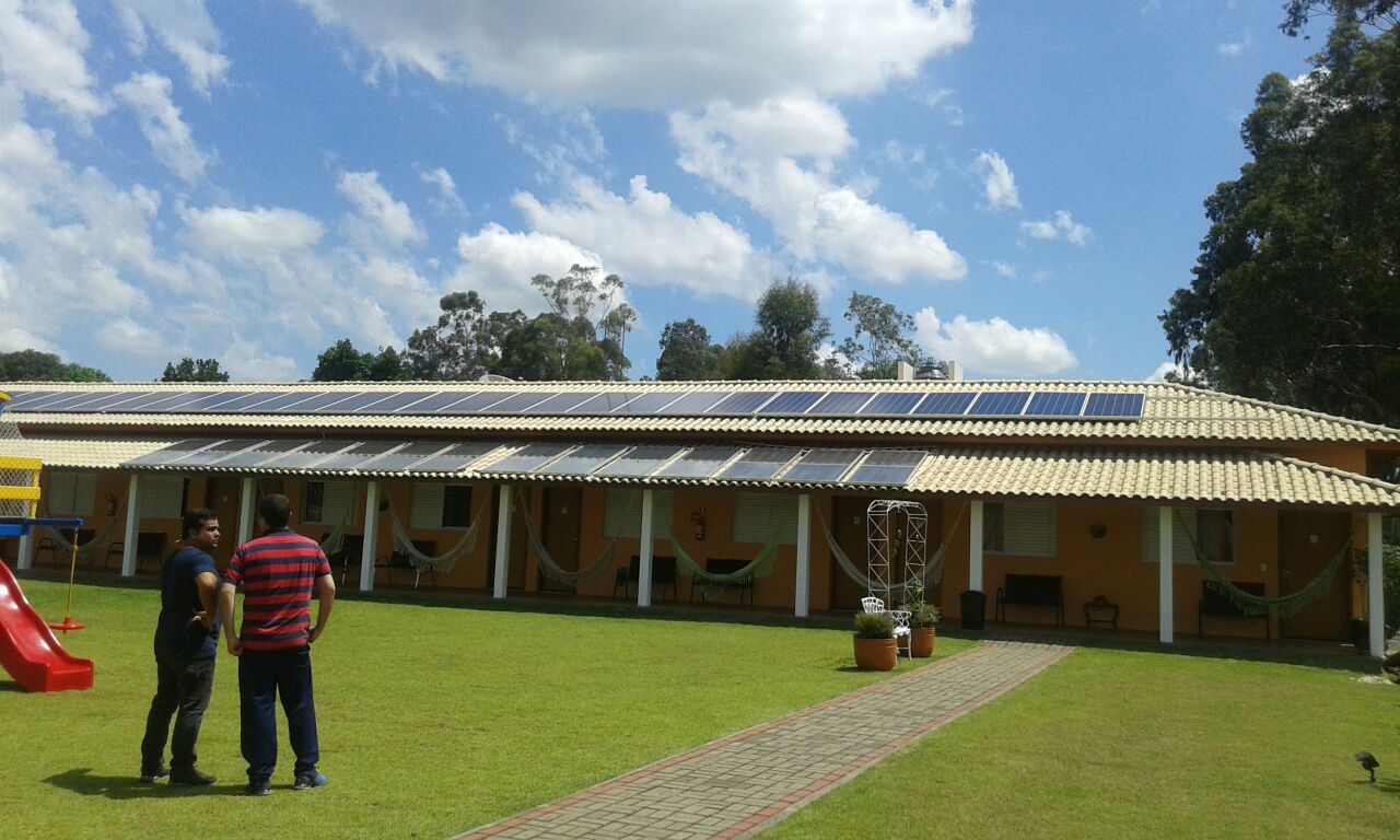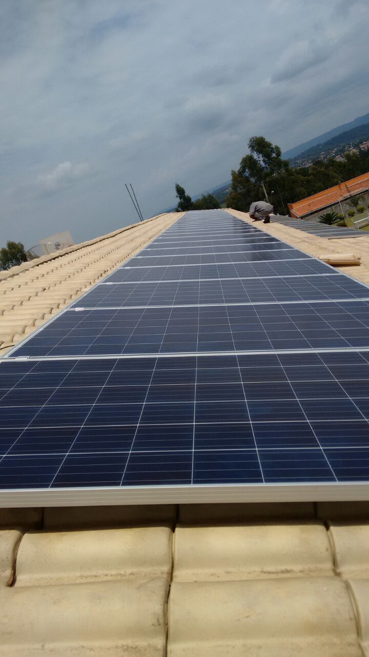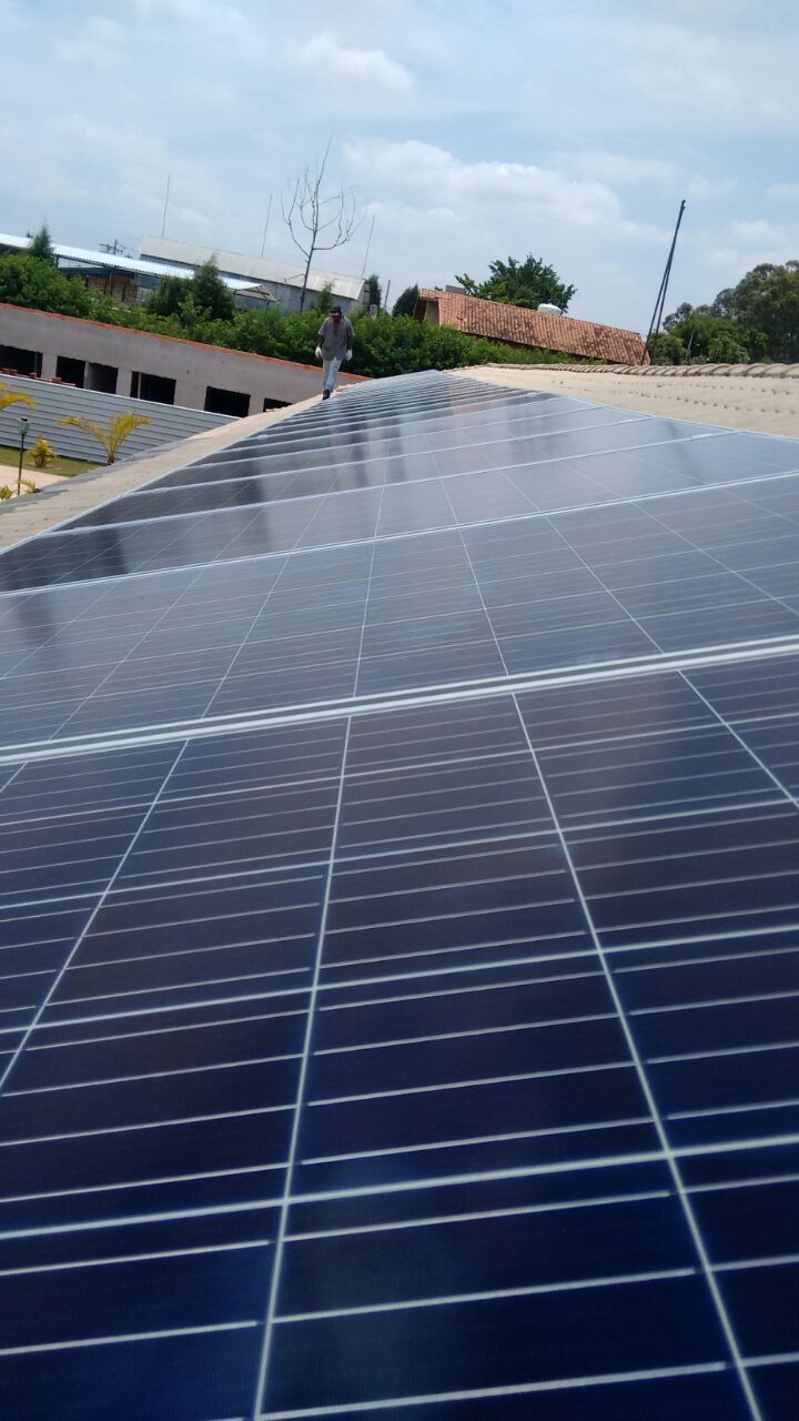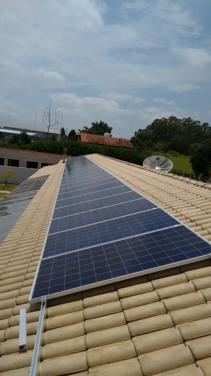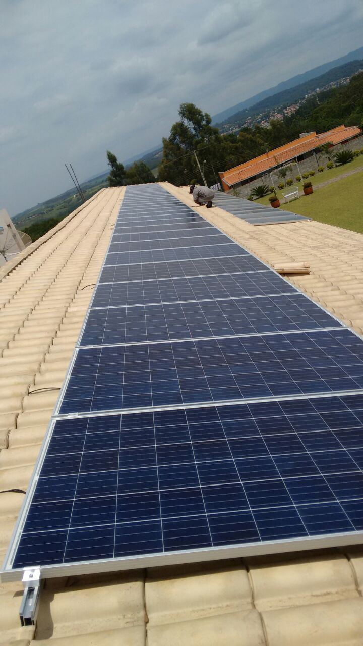 Micro Usina Fotovoltaica composta de: 32 painéis de 310Wp; 2 Inversores de 5KW; Economia mensal entre R$ 1300,00 a R$ 1500,00; Payback de 4,6 anos.